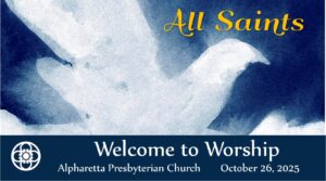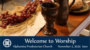 Alpharetta Presbyterian Church> Worship & Music> Worship Services> Livestream> Worship & Music Worship Services Music & Choirs Livestream Spanish Congregation Calendar of Events Documents and Forms Livestream Sunday, November 2, 2025 11amRev. Dr. Ollie WagnerYouTube livestream link Sunday, October 26, 2025 11am All Saints ObservedRev. Dr. Ollie WagnerYouTube livestream link Sunday, October 19, 2025 11amRev. Dr. Ollie WagnerYouTube livestream link Sunday, October 12, 2025 11amRev. Dr. Beverly MarkhamYouTube livestream link Sunday, October 5, 2025 10:30amWorld Communion SundayYouTube livestream link Sunday, September 28, 2025 11:00amDr. Ollie WagnerYouTube livestream link Sunday, September 21, 2025 11:00amDr. Ollie WagnerYouTube livestream link Sunday, September 14, 2025 11:00amOpen Arms SundayYouTube livestream link Sunday, September 7, 2025 11:00amRev. Dr. Ollie WagnerYouTube livestream link Sunday, August 31, 2025 11:00amRev. Dr. Ollie WagnerYouTube livestream link Sunday, August 24, 2025 11:00amRev. Dana AbuGhazalehYouTube livestream link Sunday, August 17, 2025 11:00amRev. Dr. Ollie WagnerYouTube livestream link Sunday, August 10, 2025 11:00amRev. Dr. Ollie WagnerYouTube livestream link Sunday, August 3, 2025 11:00amRev. Dr. Ollie WagnerYouTube livestream link