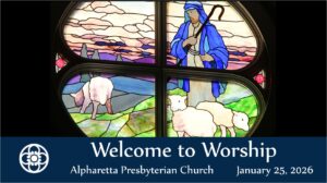 Alpharetta Presbyterian Church> Worship & Music> Worship Services> Livestream> Worship & Music Worship Services Music & Choirs Livestream Spanish Congregation Calendar of Events Documents and Forms Livestream Sunday, January 25, 2026 Virtual ServiceRev. Dr. Ollie WagnerYouTube livestream link Sunday, January 18, 2026 11am worshipRev. Dr. Ollie WagnerYouTube livestream link Sunday, January 11, 2026 11am worshipRev. Dr. Ollie WagnerYouTube livestream link Sunday, January 4, 2026 11am worshipRev. Dana AbuGhazalehYouTube livestream link Sunday, December 28, 2025 11am worshipRev. Dr. Ollie WagnerYouTube livestream link Wednesday, December 24, 2025 5pm Christmas Eve Candlelight ServiceRev. Dr. Ollie WagnerYouTube livestream link Sunday, December 21, 2025 11am 4th Sunday of AdventRev. Dr. Ollie WagnerYouTube livestream link Sunday, December 14, 2025 11am Christmas Music ServiceYouTube livestream link Sunday, December 7, 2025 11am 2nd Sunday of AdventRev. Dr. Ollie WagnerYouTube livestream link Sunday, November 30, 2025 11am 1st Sunday of AdventRev. Dana AbuGhazalehYouTube livestream link Sunday, November 23, 2025 11amRev. Dr. Ollie WagnerYouTube livestream link Sunday, November 16, 2025 11amRev. Dr. Ollie WagnerYouTube livestream link Sunday, November 9, 2025 11amRev. Dana AbuGhazalehYouTube livestream link Sunday, November 2, 2025 11amRev. Dr. Ollie WagnerYouTube livestream link Sunday, October 26, 2025 11am All Saints ObservedRev. Dr. Ollie WagnerYouTube livestream link Sunday, October 19, 2025 11amRev. Dr. Ollie WagnerYouTube livestream link Sunday, October 12, 2025 11amRev. Dr. Beverly MarkhamYouTube livestream link Sunday, October 5, 2025 10:30amWorld Communion SundayYouTube livestream link Sunday, September 28, 2025 11:00amDr. Ollie WagnerYouTube livestream link Sunday, September 21, 2025 11:00amDr. Ollie WagnerYouTube livestream link Sunday, September 14, 2025 11:00amOpen Arms SundayYouTube livestream link Sunday, September 7, 2025 11:00amRev. Dr. Ollie WagnerYouTube livestream link Sunday, August 31, 2025 11:00amRev. Dr. Ollie WagnerYouTube livestream link Sunday, August 24, 2025 11:00amRev. Dana AbuGhazalehYouTube livestream link Sunday, August 17, 2025 11:00amRev. Dr. Ollie WagnerYouTube livestream link Sunday, August 10, 2025 11:00amRev. Dr. Ollie WagnerYouTube livestream link Sunday, August 3, 2025 11:00amRev. Dr. Ollie WagnerYouTube livestream link