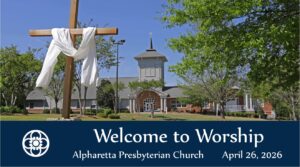 Alpharetta Presbyterian Church> Worship & Music> Worship Services> Livestream> Worship & Music Worship Services Music & Choirs Livestream Spanish Congregation Calendar of Events Documents and Forms Livestream Sunday, April 26, 2026 11amRev. Dr. Ollie WagnerYouTube livestream link Sunday, April 19, 2026 11amDayschool SundayYouTube livestream link Sunday, April 12, 2026 11amRev. Patrick DayYouTube livestream link Sunday, April 12, 2026 5pmEPIC + Open Arms Easter CelebrationYouTube livestream link Sunday, April 5, 2026 11amEaster SundayYouTube livestream link Friday, April 3, 2026 12pmGood FridayYouTube livestream link Sunday, March 29, 2026 11amPalm SundayYouTube livestream link Sunday, March 22, 2026 11amKirkin o’ the TartanYouTube livestream link Sunday, March 15, 2026 11amDr. Ollie WagnerYouTube livestream link Sunday, March 8, 2026 5 pmEPIC WorshipYouTube livestream link Sunday, March 8, 2026 11 amRev. Dana AbuGhazalehYouTube livestream link Sunday, March 1, 2026 11 amRev. Dr. Ollie WagnerYouTube livestream link Sunday, February 22, 2026 11 amService of Healing & WholenessYouTube livestream link Wednesday, February 18 7:00 pmAsh WednesdayYouTube livestream link Sunday, February 15, 2026 11 amRev. Dana AbuGhazalehYouTube livestream link Sunday, February 8, 2026 11 amRev. Dr. Ollie WagnerYouTube livestream link Sunday, February 1, 2026 Virtual ServiceRev. Dr. Ollie WagnerYouTube livestream link Sunday, January 25, 2026 Virtual ServiceRev. Dr. Ollie WagnerYouTube livestream link Sunday, January 18, 2026 11am worshipRev. Dr. Ollie WagnerYouTube livestream link Sunday, January 11, 2026 11am worshipRev. Dr. Ollie WagnerYouTube livestream link Sunday, January 4, 2026 11am worshipRev. Dana AbuGhazalehYouTube livestream link Sunday, December 28, 2025 11am worshipRev. Dr. Ollie WagnerYouTube livestream link Wednesday, December 24, 2025 5pm Christmas Eve Candlelight ServiceRev. Dr. Ollie WagnerYouTube livestream link Sunday, December 21, 2025 11am 4th Sunday of AdventRev. Dr. Ollie WagnerYouTube livestream link Sunday, December 14, 2025 11am Christmas Music ServiceYouTube livestream link Sunday, December 7, 2025 11am 2nd Sunday of AdventRev. Dr. Ollie WagnerYouTube livestream link Sunday, November 30, 2025 11am 1st Sunday of AdventRev. Dana AbuGhazalehYouTube livestream link Sunday, November 23, 2025 11amRev. Dr. Ollie WagnerYouTube livestream link Sunday, November 16, 2025 11amRev. Dr. Ollie WagnerYouTube livestream link Sunday, November 9, 2025 11amRev. Dana AbuGhazalehYouTube livestream link Sunday, November 2, 2025 11amRev. Dr. Ollie WagnerYouTube livestream link Sunday, October 26, 2025 11am All Saints ObservedRev. Dr. Ollie WagnerYouTube livestream link Sunday, October 19, 2025 11amRev. Dr. Ollie WagnerYouTube livestream link Sunday, October 12, 2025 11amRev. Dr. Beverly MarkhamYouTube livestream link Sunday, October 5, 2025 10:30amWorld Communion SundayYouTube livestream link Sunday, September 28, 2025 11:00amDr. Ollie WagnerYouTube livestream link Sunday, September 21, 2025 11:00amDr. Ollie WagnerYouTube livestream link Sunday, September 14, 2025 11:00amOpen Arms SundayYouTube livestream link Sunday, September 7, 2025 11:00amRev. Dr. Ollie WagnerYouTube livestream link Sunday, August 31, 2025 11:00amRev. Dr. Ollie WagnerYouTube livestream link Sunday, August 24, 2025 11:00amRev. Dana AbuGhazalehYouTube livestream link Sunday, August 17, 2025 11:00amRev. Dr. Ollie WagnerYouTube livestream link Sunday, August 10, 2025 11:00amRev. Dr. Ollie WagnerYouTube livestream link Sunday, August 3, 2025 11:00amRev. Dr. Ollie WagnerYouTube livestream link
